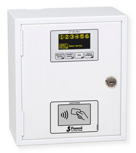 CT42, CT62 Zeitgeber für Wertkarten für 4-6 Services. Version mit berührungslosem RFID Leser.Verwendet grafisches OLED-Display.