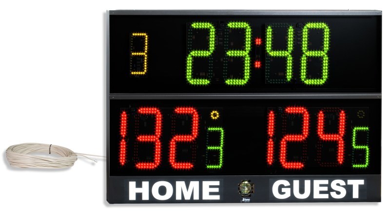 Electronic multisport scoreboard (150 x 98 cm) for great gyms and sporting centres. Scoreboards for basketball, volley, 5-aside, handball, ecc.