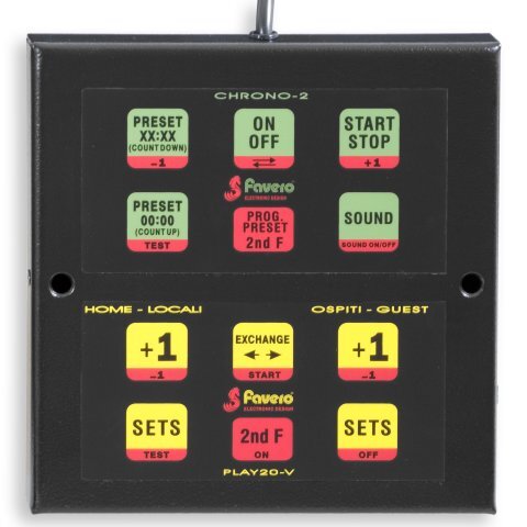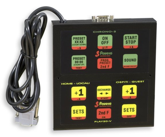 A second console can be connected to the main one with a cable long 1.5m to allow a more comfortable management of the scoreboards by 2 people (Time controller and Scorer).