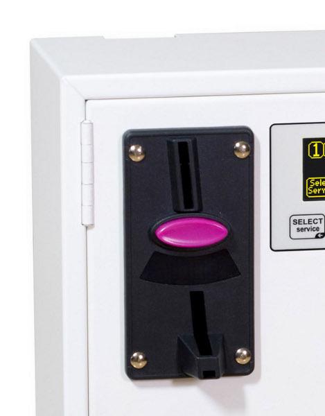 • Monnayeur multi-pièces électronique.(photo) Il est d'utilité lorsque l'on veut que le CT accepte jusqu'à 6 pièces différentes. Les pièces sont programmées par le gérant de l'installation en introduisant plusieurs fois chaque type de pièce. Le temps programmé dans le CT est associé à la pièce dont la valeur est la plus basse; les 5 autres pièces doivent avoir une valeur multiple de la première. De plus, il est possible de paramétrer l'acceptation de 2 pièces différentes (ou un jeton et une pièce) ayant la même valeur.