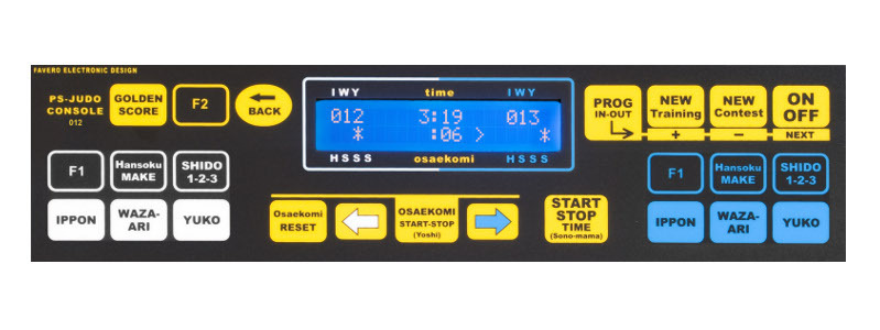 - Punteggi: YUKO, WAZA-ARI ed IPPON in modo diretto tramite gli appositi tasti oppure automaticamente come conseguenza di penalità inflitte all’avversario.