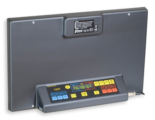 - Console di comando con display luminoso, posta dietro al tabellone per un agevole uso da tavolo, con tastiera a membrana inattacabile da sporco e liquidi.