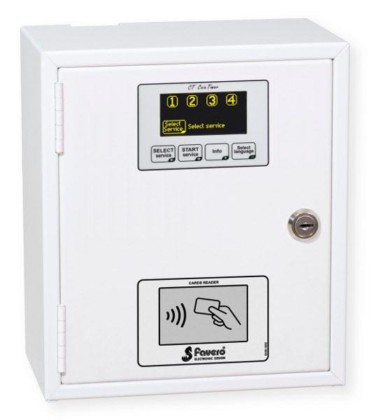 CT42, CT62 Zeitgeber für Wertkarten für 4-6 Services. Version mit berührungslosem RFID Leser.Verwendet grafisches OLED-Display.