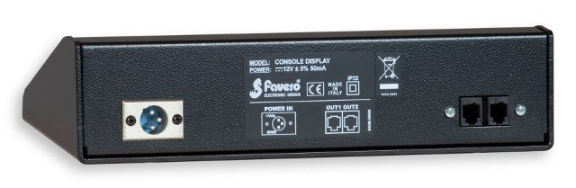 - Serielle Ports Out/In: zum Anschluss mehrerer Anzeigetafeln untereinander und für die Wiederholung der Anzeigen von verschiedenen Positionen und Blickwinkeln aus.