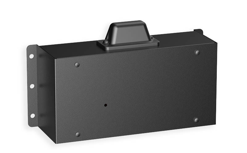 Robust container made from powder-coated aluminum. It is provided with 4 wall brackets. Front panel made from anti-glare polycarbonate.