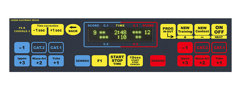 - Punteggi: YUKO, WAZA-ARI, IPPON, per aggiungere rispettivamente +1, +2 o +3 punti. SENSHU visualizzato nella cifra delle decine.
